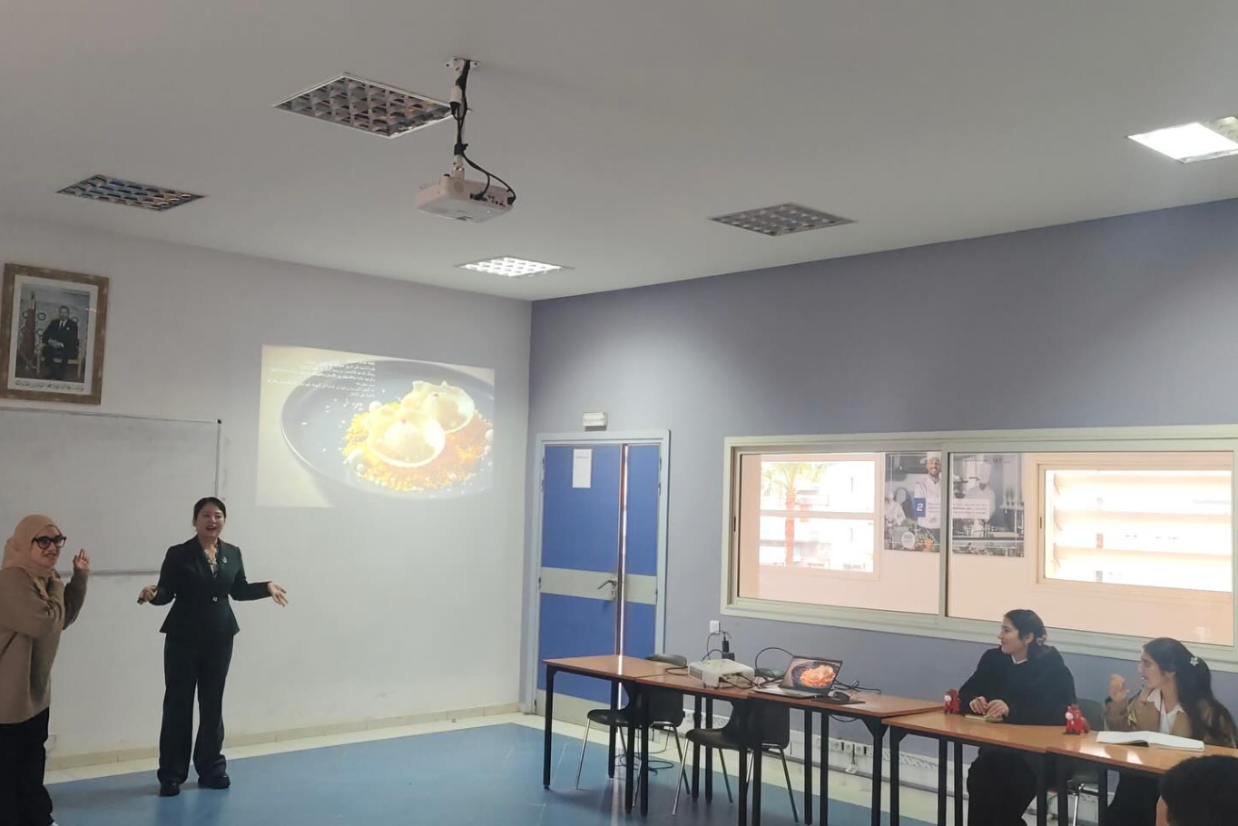 1月22日,一场别开生面的中华美食教学培训活动在特马拉盖什·卢达亚酒店和旅游业培训中心展开。世界中餐业联合会秘书长赵文珂为培训中心学员带来了以《味传千年·和而不同:中国饮食的文明切片与未来启示》为题的精彩分享,深入浅出地介绍了中餐的发展脉络、文化内涵以及在国际餐饮领域中的独特地位。台下20余名师生听得津津有味,并就相关话题展开了热烈的问答互动。